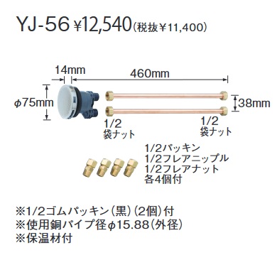 長府製作所 YJ-56 給湯器部材 一口循環口 銅フレア用 Chofu □