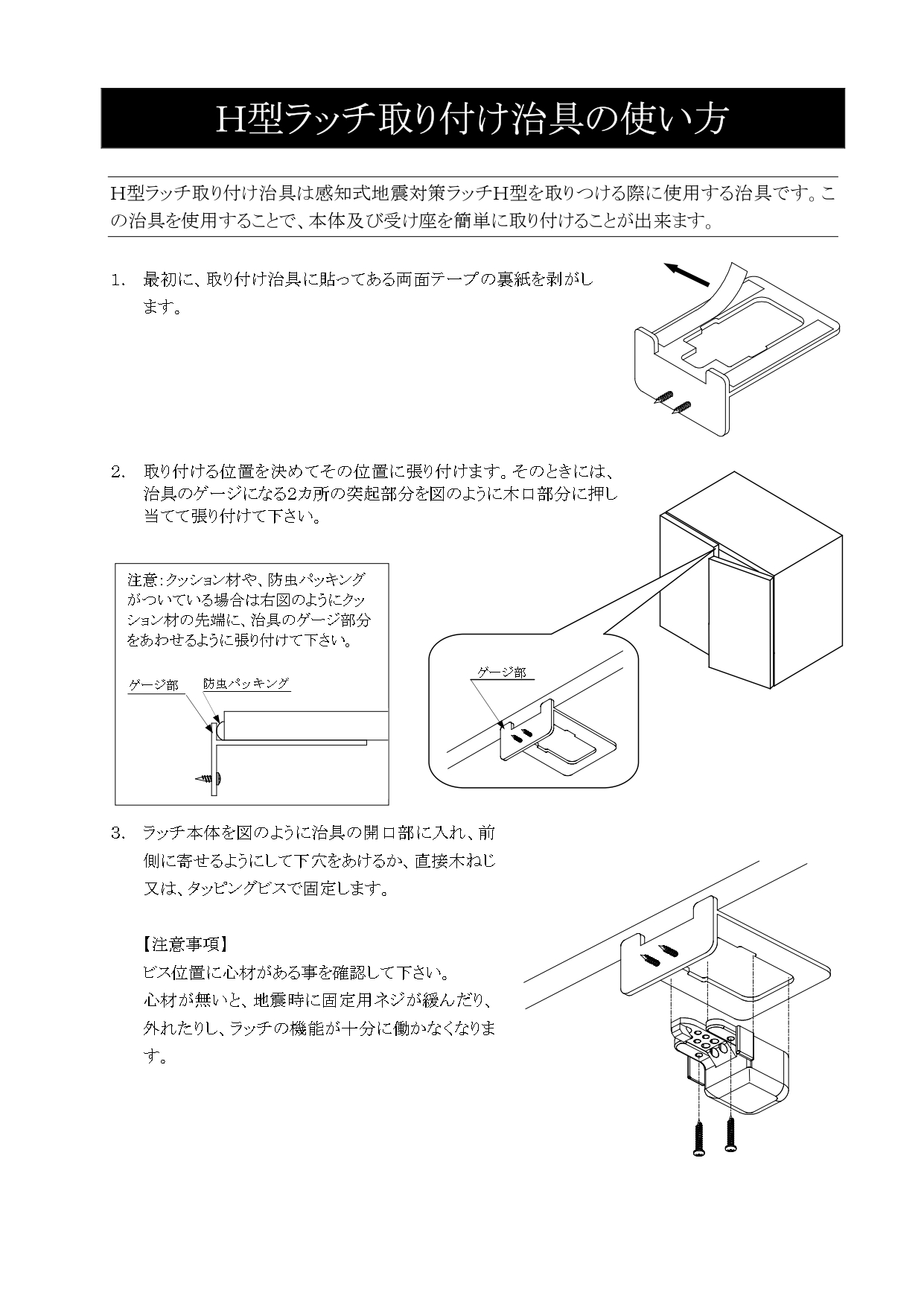 【在庫あり】耐震ラッチ 感知式地震対策ラッチH型専用 取付けジグ(取付け位置決めツール) 食器棚 地震対策グッズ 防災 ≪本体別途≫