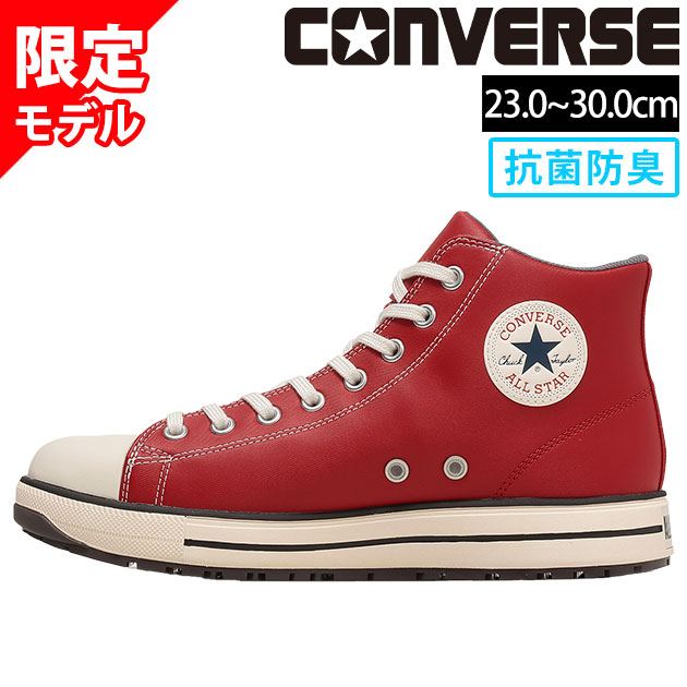 | 【特徴】 | 大人気コンバース安全靴! 足元が映えるレッドは数量限定モデル! 売切れたら二度と手に入らない限定カラーです! 更なるスペックアップデートを遂げたハイカットモデル! ヒールラベルやラインの入ったミッドソールなど、よりオールスターらしいデザインに。 カジュアルな見た目と抜群な履き心地を両立したハイスペック安全靴! ◆軽くて丈夫な人工皮革「クラリーノ」を採用! ◆クッション性のあるミッドソールと中敷きで疲れにくい! ◆つま先を少し高めに上げる設計をしているのでつまづきにくい! ◆靴の中は抗菌防臭加工を施しているのでニオイを軽減! ◆ソールは耐滑性を備え、動きやすさと安全性を確保 ◆ベロ部分は作業時のムレを逃がすメッシュ素材を採用!さらに網目状の通気孔を設け、ムレを軽減! ◆かかと部分に反射材を採用!オールスターらしいデザインを生かしながら視認性も確保 |