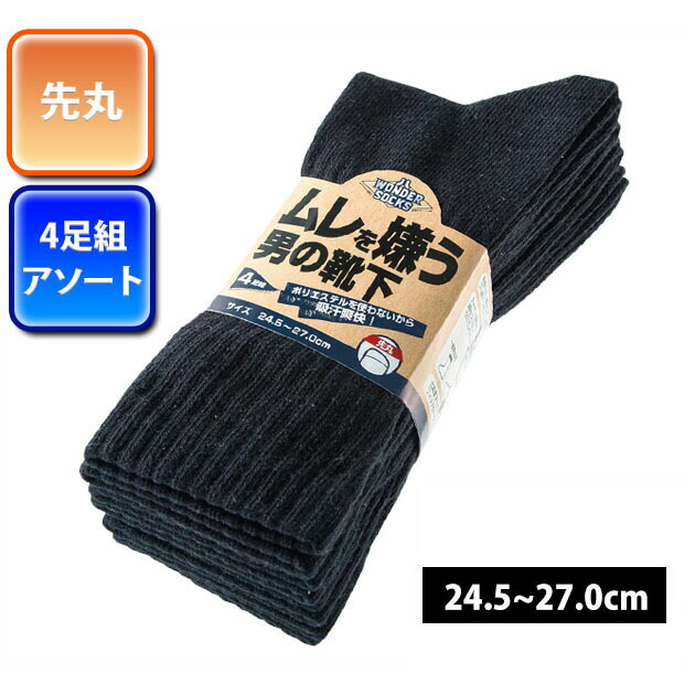 ユニワールド|靴下|ムレを嫌う男の靴下 先丸4足組 WS-9301