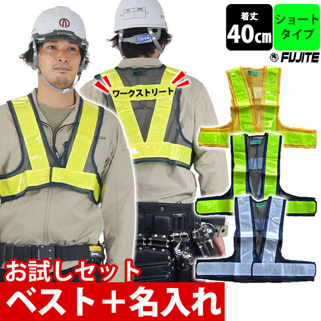 「お試し名入れベスト」富士手袋工業 安全ベスト ショート丈安全ベスト名入れお試しセット 3275