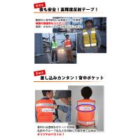 特徴 | セットでお得な50枚セット! 町内会や自治体、団体・企業の皆様にオススメの防犯パトロールベストです! ◆反射テープ部分に名入れができる! 胸部分と背中・腰部分に名入れができます!(別途料金がかかります) 町内会の名前や団体名、企業名が入れられます! ◆夜も安全!高輝度反射テープ! 胸部分と背中部分には反射テープを使用! 夜間や夕方のパトロールにオススメです。 ◆紙をはさめる背中ポケット!すぐオリジナルベストができる! 背中には透明なポケットを採用しているので名前やグループ名を印刷した紙を差し込めばすぐにオリジナルベストに早変わり! ◆脇部分サイズ調整マジック付き 胴回りは80cm〜140cm程度まで調節可能! ◆丈夫なメッシュ ◆フタ付き両脇大型ポケット ◆マチ付き胸ポケット |
