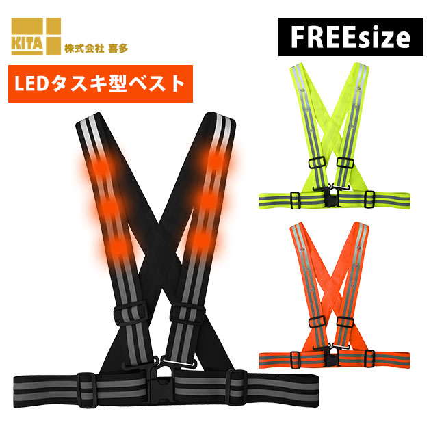 | 【特徴】 | タスキ型のLED安全ベストがついに登場! 夜間や暗い場所などの作業にピッタリ! 高輝度LEDと強力反射テープで視認性抜群! ◆前後合わせて11個のLEDが視認性を確保! ◆タスキ型だからしっかりフィットし邪魔にならない! ◆装着は簡単なワンタッチバックル! ◆LEDの点灯パターンは3通り! ボタン1回押し…早く点滅 ボタン2回押し…ゆっくりと点滅 ボタン3回押し…常時点灯 ※電池は別売りです(単3電池2本必要です) |