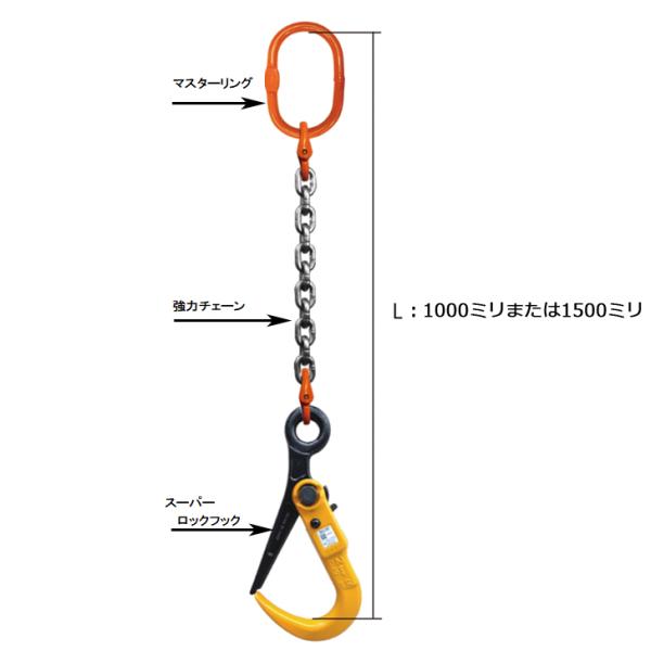 Kanaoni 敷鉄板吊用チェーン 2tタイプ 長さ1m マスターリンク スーパーロックフック セット品 Sスリング M-SLH2N1 代引き不可