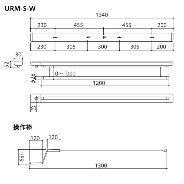 川口技研 室内用 ホスクリーン URM-S-W 昇降式 操作棒タイプ 全長1340ミリ 面付施工タイプ