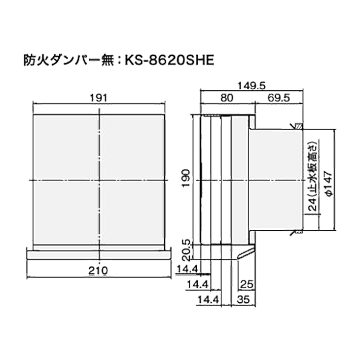 NASTA ナスタ KS-8620SHE 無塗装 屋外換気口 ステンレス 強制換気用スリムタイプ 150ミリ用