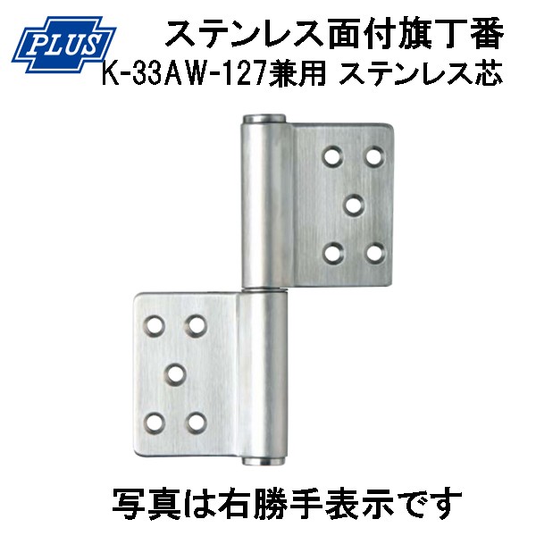 クマモト プラス PLUS K-33AW-127 ステンレス KJ 面付旗丁番 ステンレス芯 左右兼用 3x127 ヘアーライン