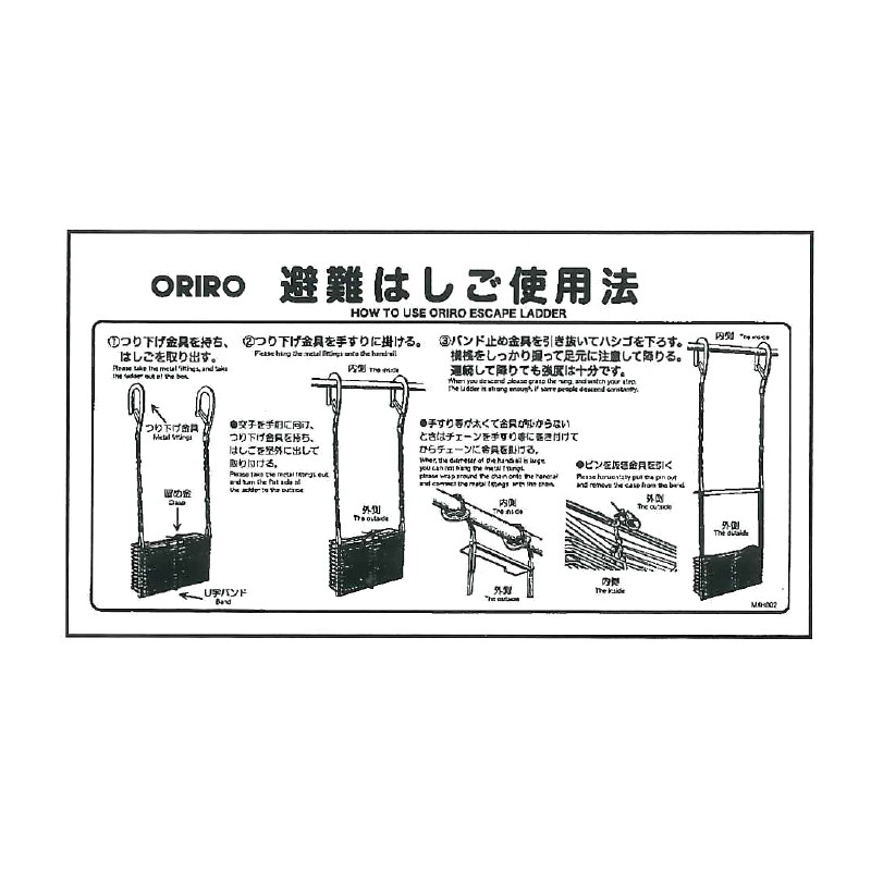 ORIRO オリロー 折りたたみ式避難はしご ナスカンフック用使用法表示板 MKH-002