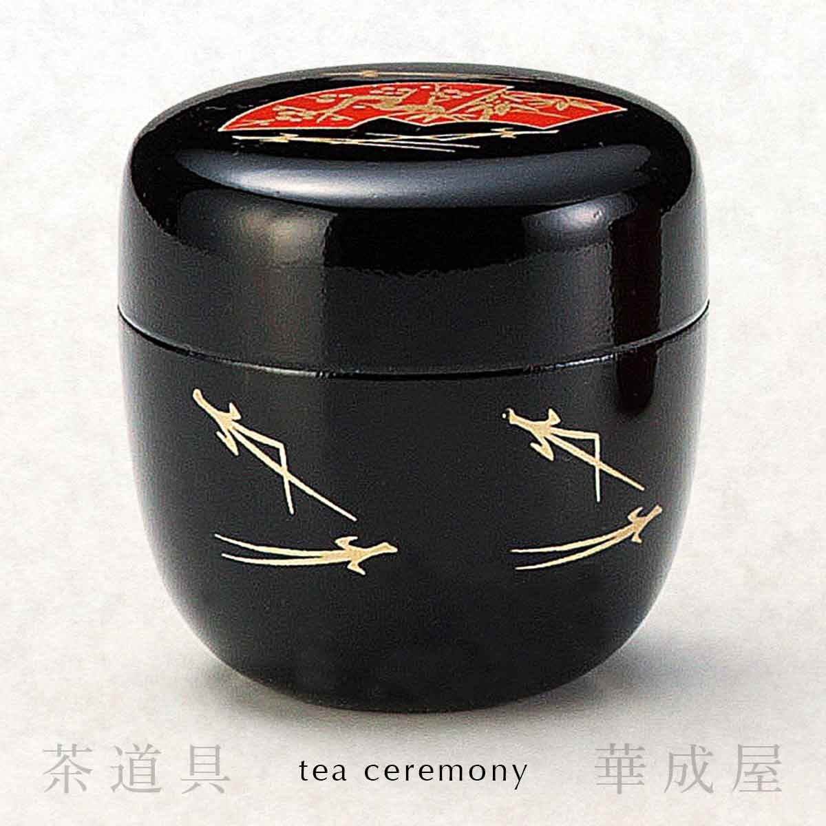 棗 黒扇面 中棗 茶道具 お抹茶 木製漆塗り 蓋物容器