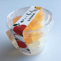 砂糖、寒天、オレンジ濃縮果汁、温州みかん濃縮果汁、糖類(ブドウ糖、果糖)、アップル濃縮果汁、デキストリン/エタノール、香料、着色料(パプリカ色素、カロチン)V.C、増粘剤(キサンタンガム)、乳化剤(大豆由来)、酸味料