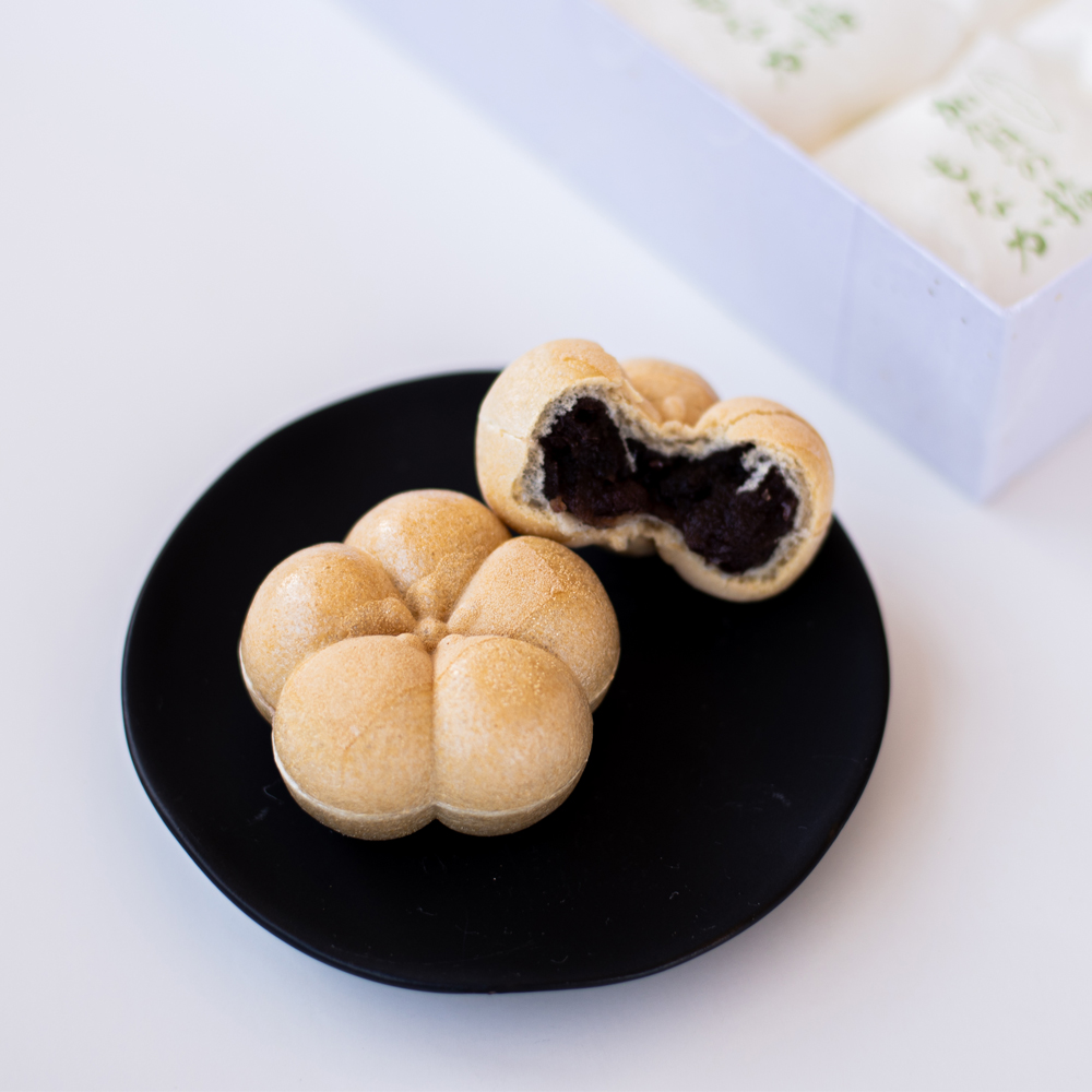 加賀藩主、前田家の家紋である梅の形のもなかに、北海道産の小豆を使った自家製粒あんがたっぷりと入っています。