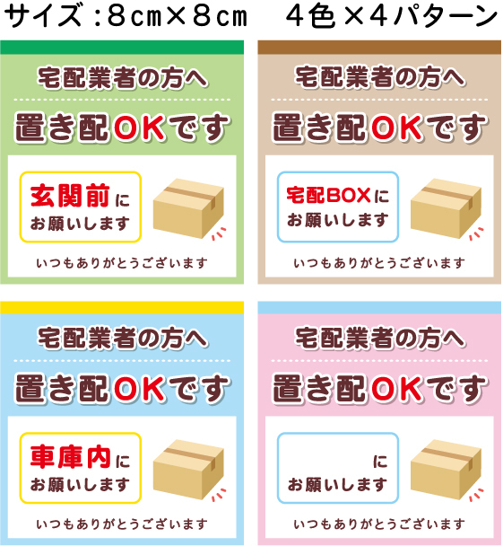 置き配OKです ステッカー シール プリント 8cm×8cm 防水 UVカット 宅配ボックス 置き配 屋外