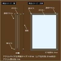 ●屋内対応/アクリル板2枚でポスターをはさみます。飾りビスで簡単にポスターの付け替えが可能です。