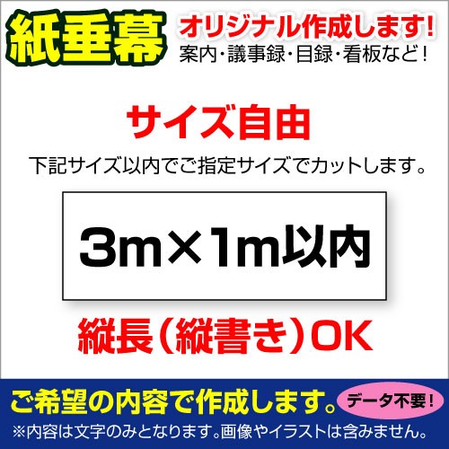 〔オリジナル垂れ幕作成/モノクロ文字のみ〕 紙 垂れ幕 縦横自由議事録 横断幕 長尺ポスター タペストリー (3m×1m以内)