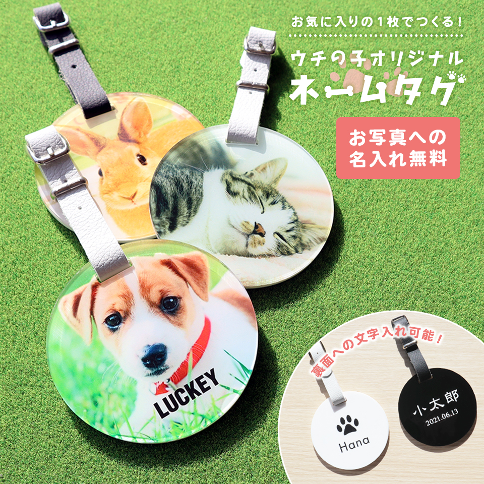 | まるでウチの子に丸い窓から見つめられているような可愛らしいネームタグ。 お気に入りのお写真をいただき、一点一点オーダーメイドでお作りします。 ウチの子の魅力をたっぷり詰め込んだあなただけのネームタグを作ってみませんか? |
