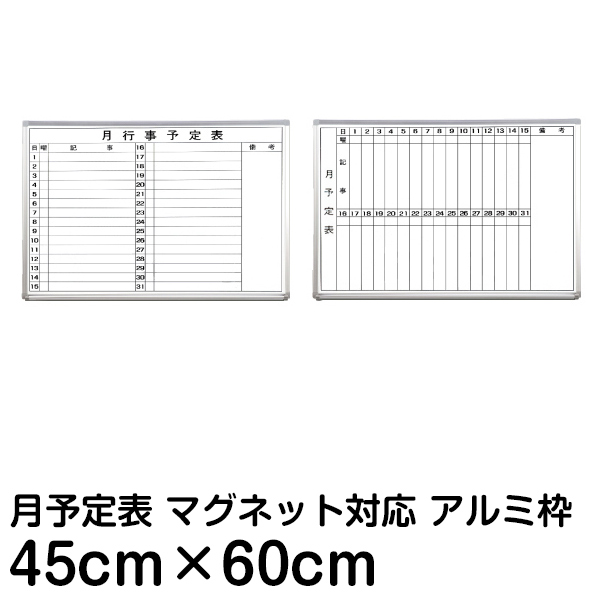 ホワイトボード 予定表 月間 行動 計画 事務所 会議室 45cm×60cm アルミ枠 マーカーボード 壁掛け 450 600