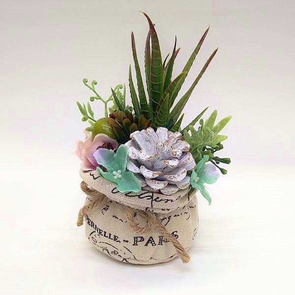 小さくて可愛いフェイクグリーンのアレンジポット。