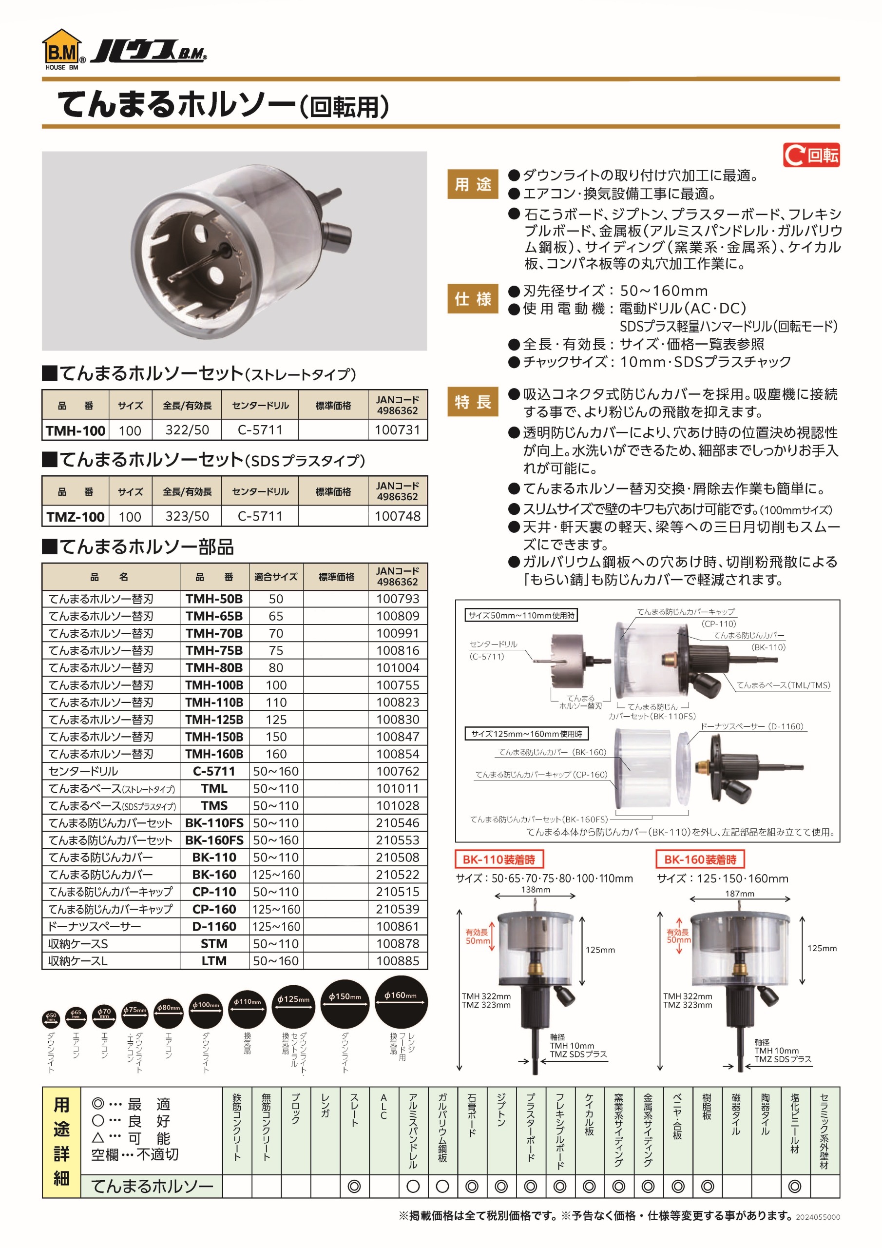 【ハウスビーエム】ハウスBM てんまるホルソーセット ダウンライトフルサイズセット ストレート TM-7515