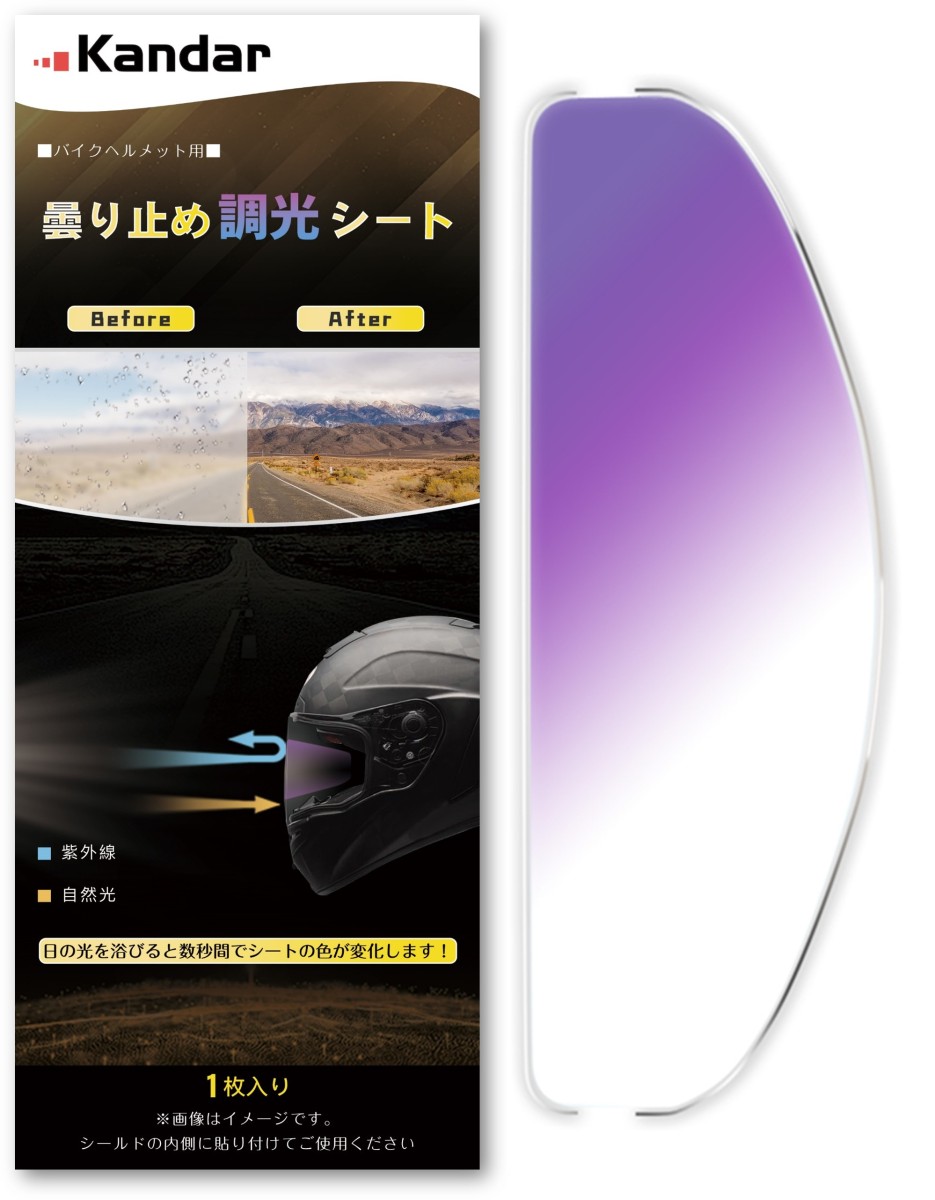 曇り止めシートはフルフェイスのヘルメットのゴーグル内側に貼るだけで、運転中の視界を遮る曇りやぎらつきを防止するバイクアクセサリーです。ヘルメットの内外の温度差で生じる結露をシートの特殊コーティングにより防ぎ、温度差が激しい冬のツーリングでも視界をくっきりクリアに保ちます。