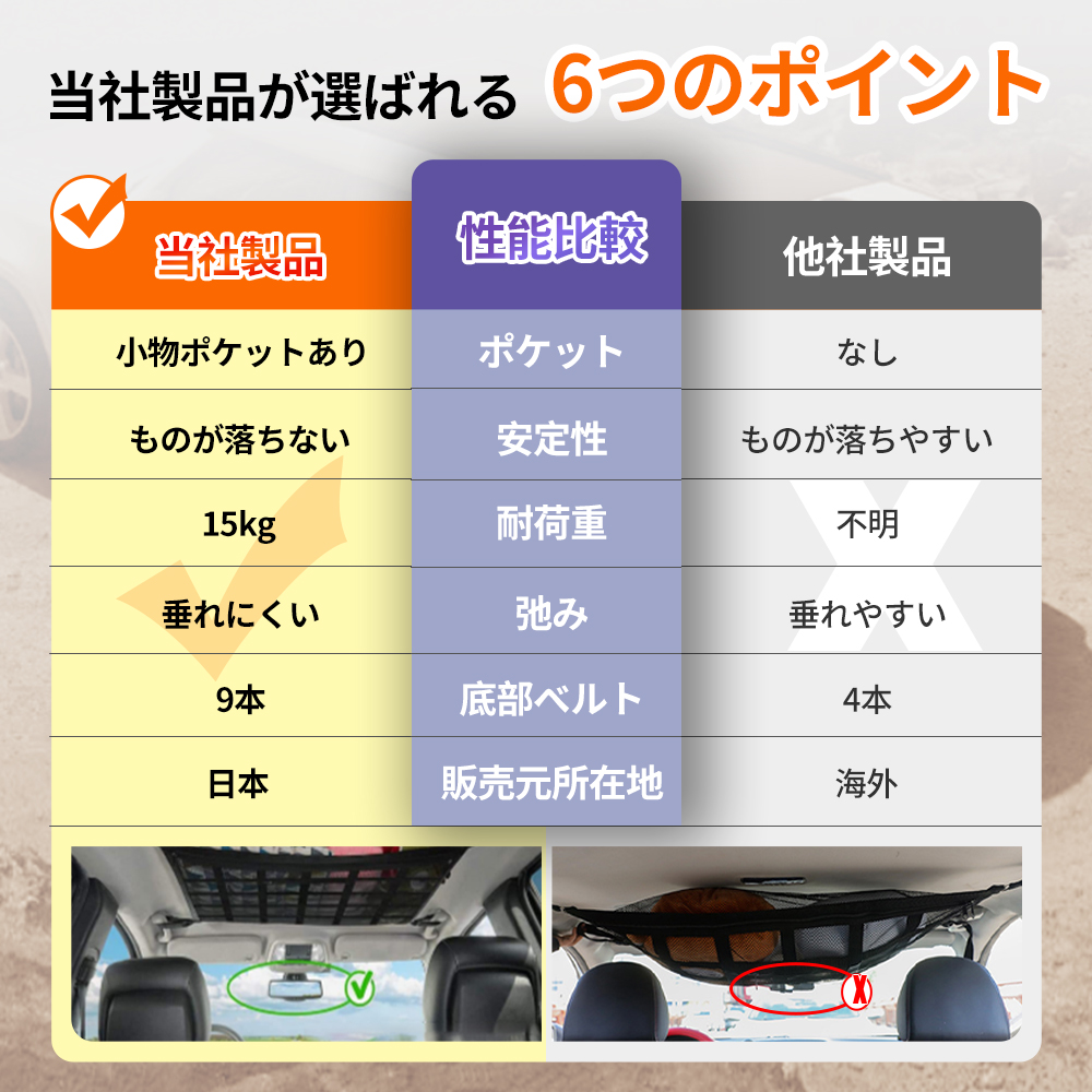 【車内天井収納ネット】