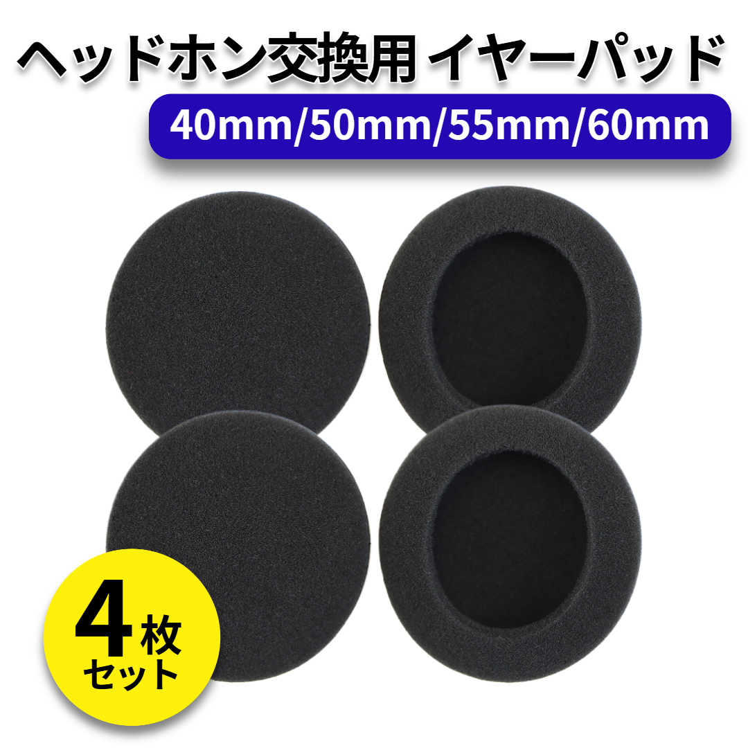 ヘッドホン 交換用 イヤーパッド 4枚セット 40mm 50mm 55mm 60mm ヘッドセット スポンジ ヘッドフォン イヤークッション ブラック 黒