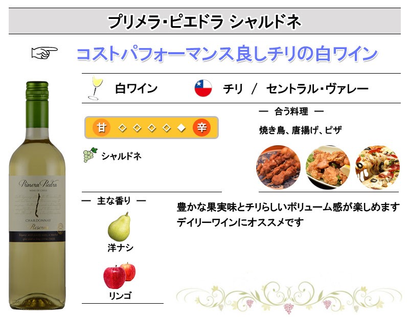 白ワイン プリメラ・ピエドラ シャルドネ チリワイン 辛口 シャルドネ お年賀