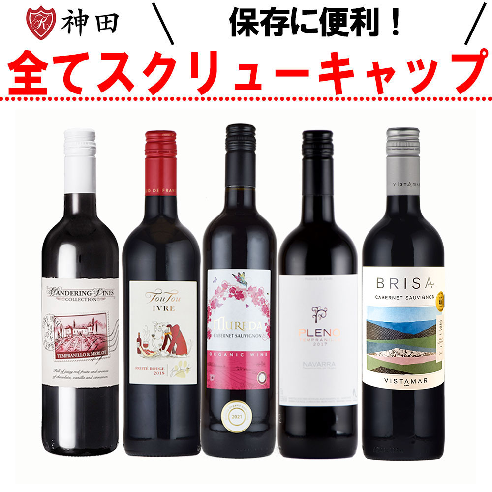スクリューキャップ 赤 ワイン 5本 セット オーガニック ワイン 入り 母の日