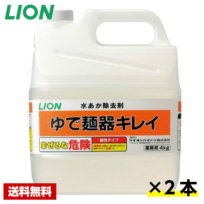 【送料無料】 水あか除去剤 LION ゆで麺器キレイ 4kg×2本 ライオン ケース販売 詰め替え用 業務用