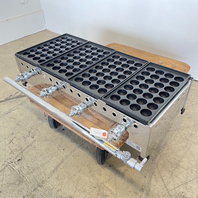 特記事項 | ・奥行寸法はガス管含みません。ガス管寸法は+120mmです。 ・未使用品です。 ・鉄鋳物 ・銘板には184SHと記載がありますが、28穴×4枚、直径38mmのたこ焼が焼けます。 ※未使用品ですが、保管によるキズ、スレ、汚れ、サビが見られる場合がございます。 |