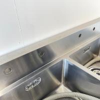 | 特記事項 | ・アジャスト全て良好 ・バックガード=150mm ・排水トラップ新品に交換済み ・バックガードに水栓取付用穴30Φ×4あり ※使用に伴うキズ、スレ、サビ、凹みあり |