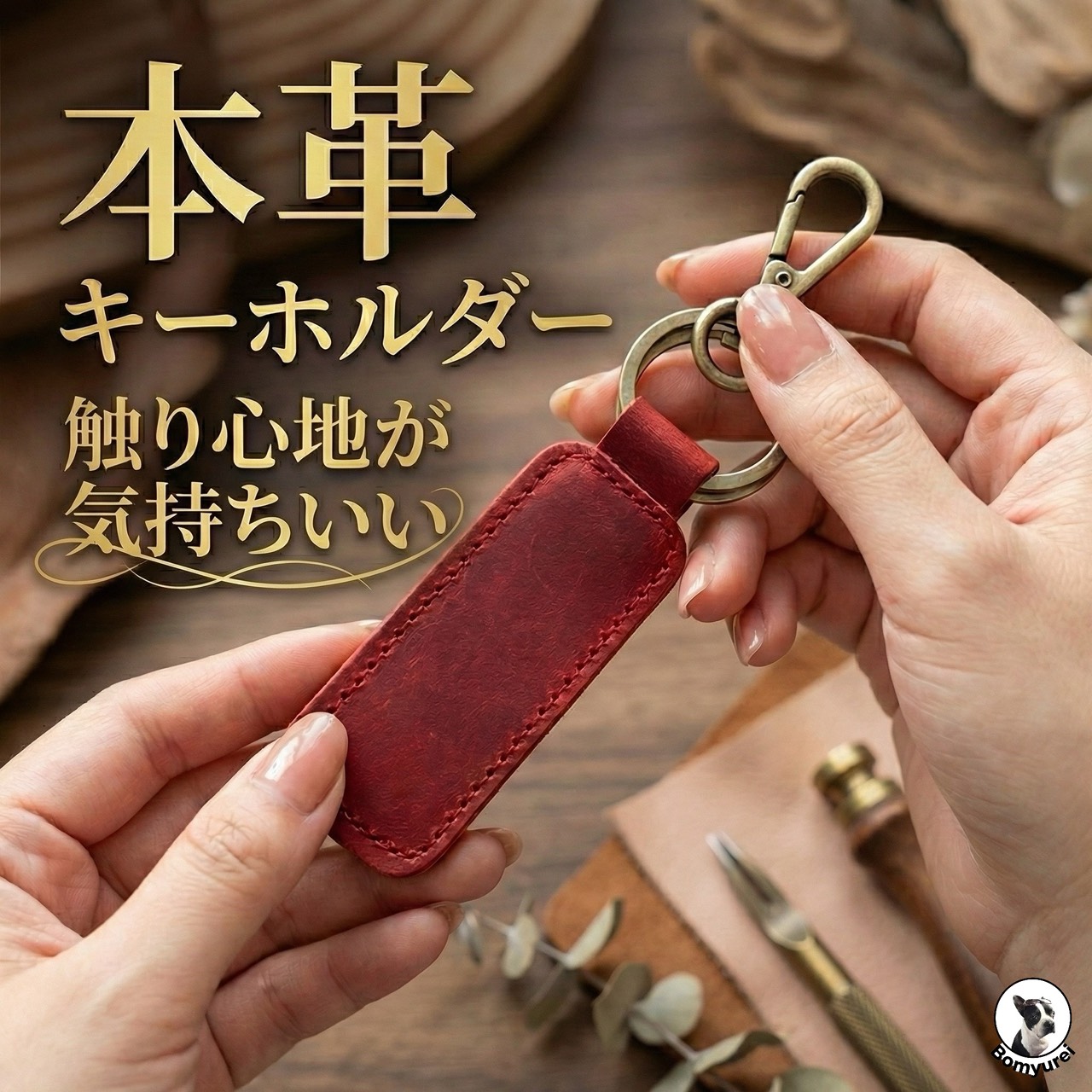 高品質でこだわりの天然皮革を使ったレザーフラットキーホルダーです。