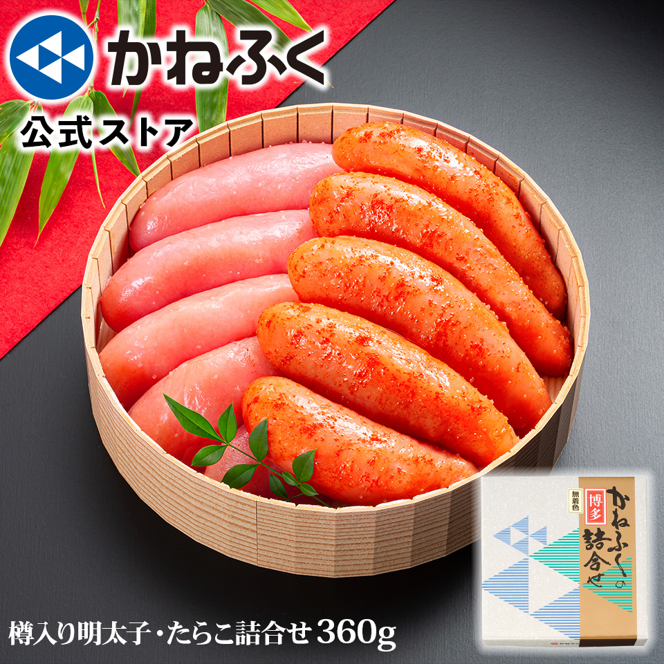 明太子 かねふく 樽入り辛子明太子・たらこ詰め合わせ 360g 無着色 一本物 送料無料 明太子 たらこ 博多詰合せ 博多直送 kanefuku 公式ストア