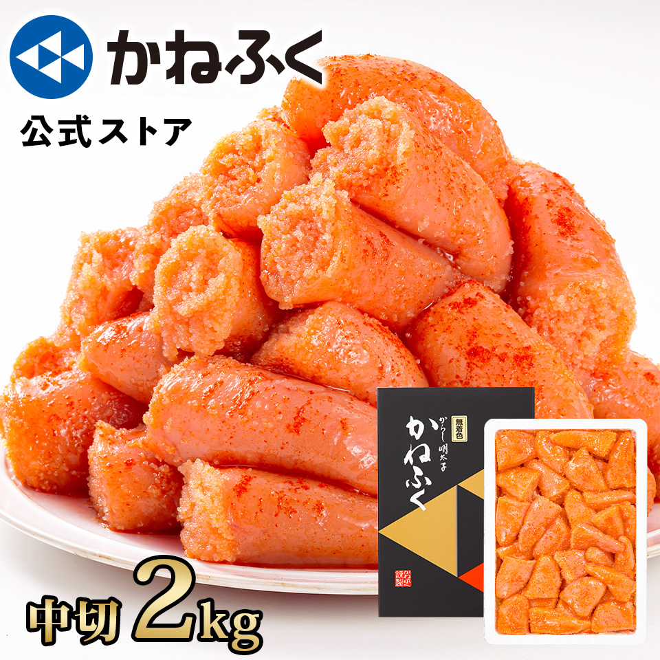 かねふく 明太子 訳あり 2kg (中切) 無着色 送料無料 徳用 辛子明太子 切子 きれこ 大容量 ギフト 公式ストア