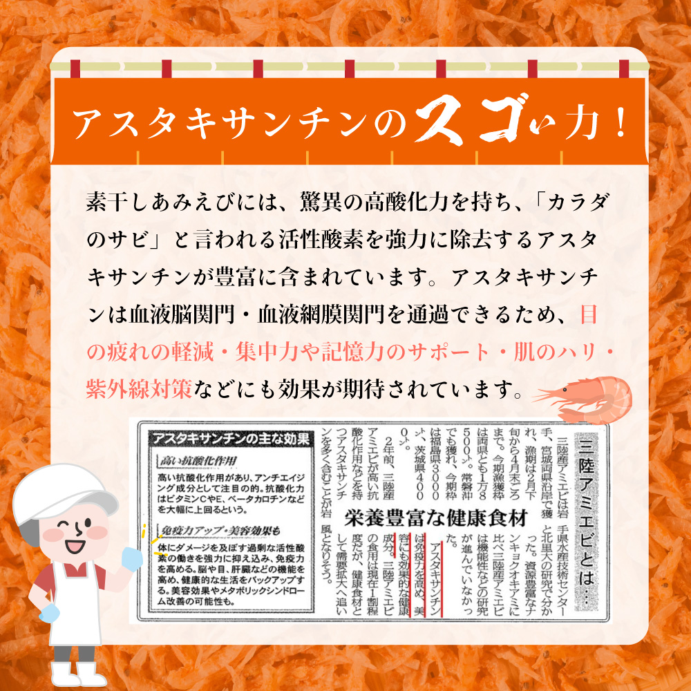 兼上 素干しあみえび 50g×1袋 岩手県三陸産 オキアミ 乾燥 国産 無添加 無着色 干しエビ 干しえび 乾燥えび 桜えびの代わり