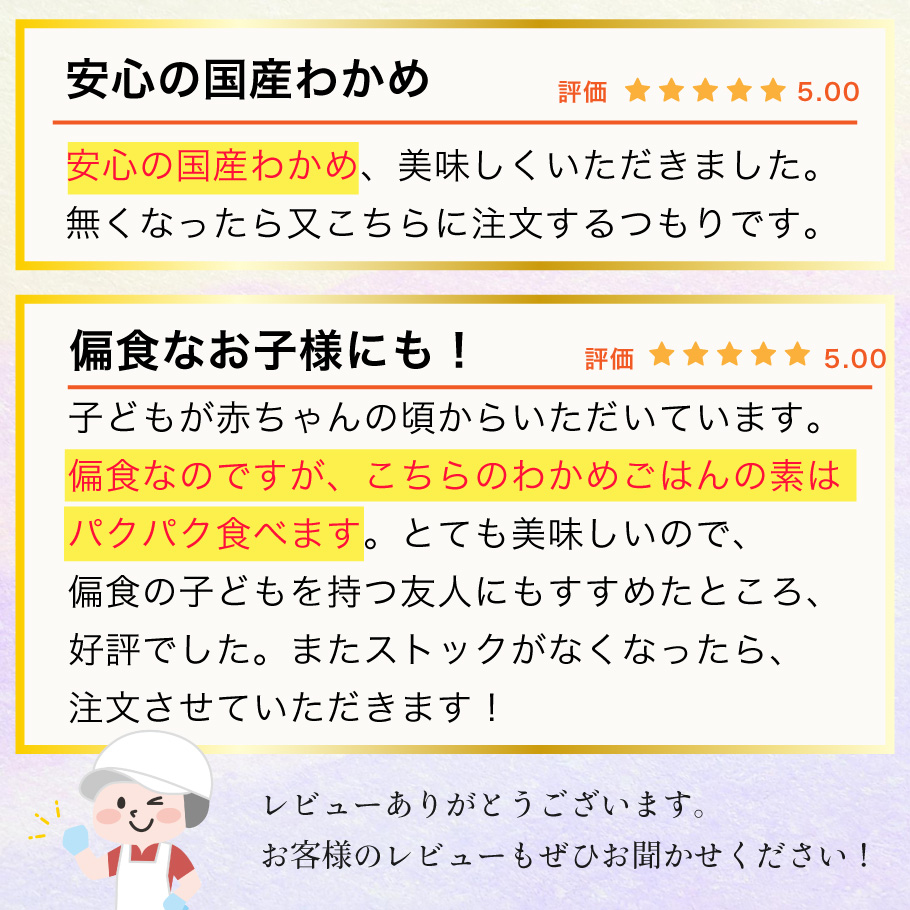 国産・無添加のわかめごはんの素です。