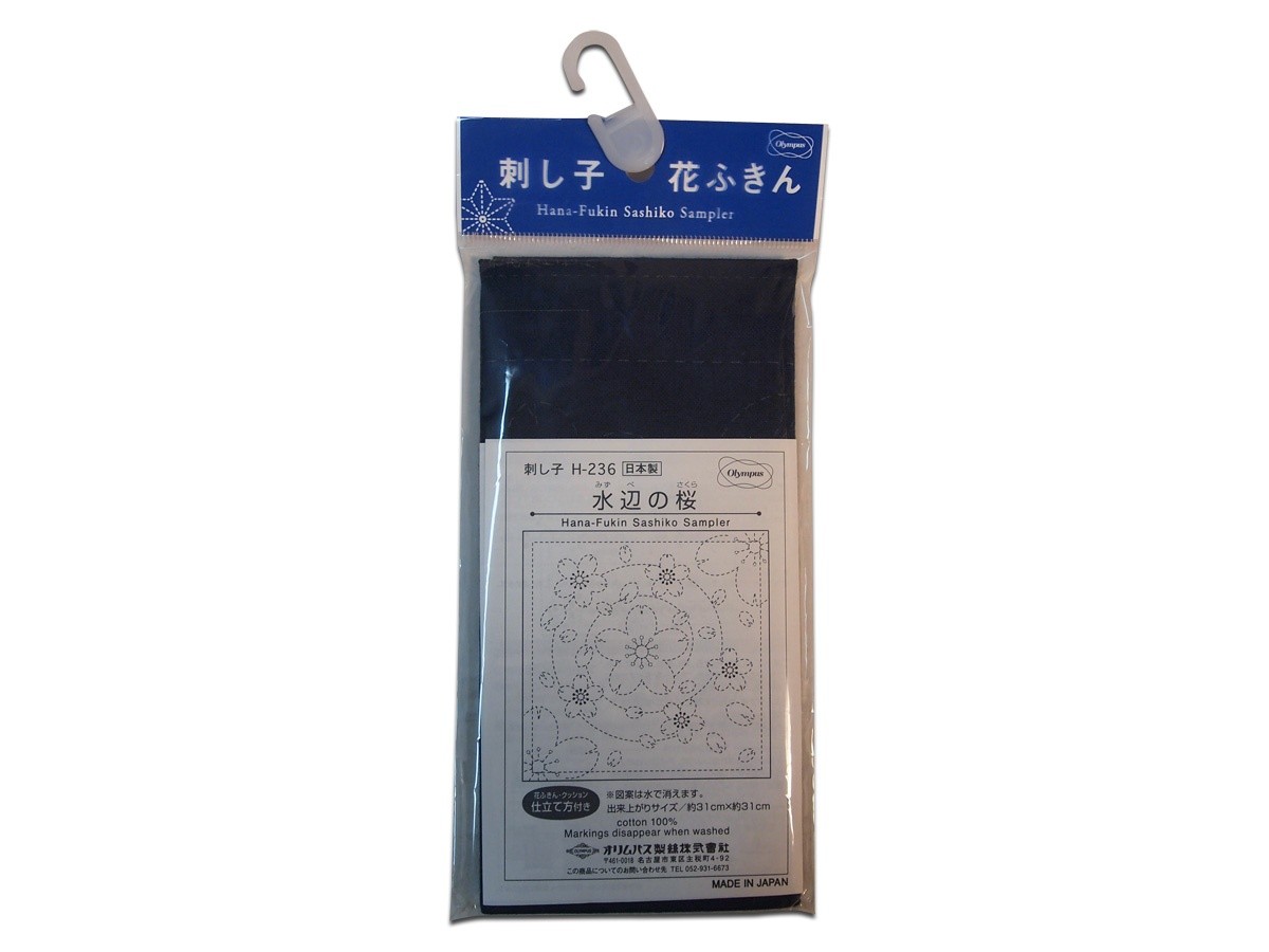オリムパス 刺し子 花ふきん布パック 藍 No.236 水辺の桜