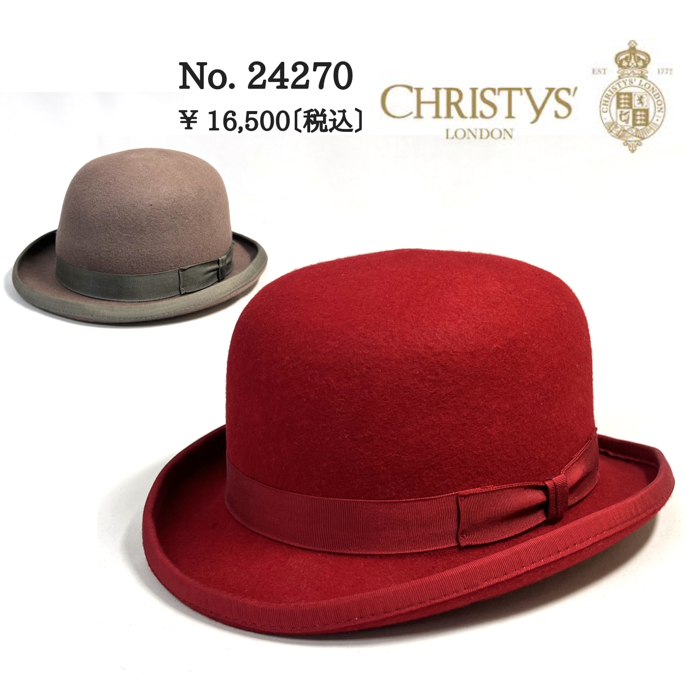 帽子 普通サイズ CHRISTYS' LONDON 帽子 ボーラーハット クリスティーズロンドン ダービーハット フェルトハット メンズ レディース 秋冬