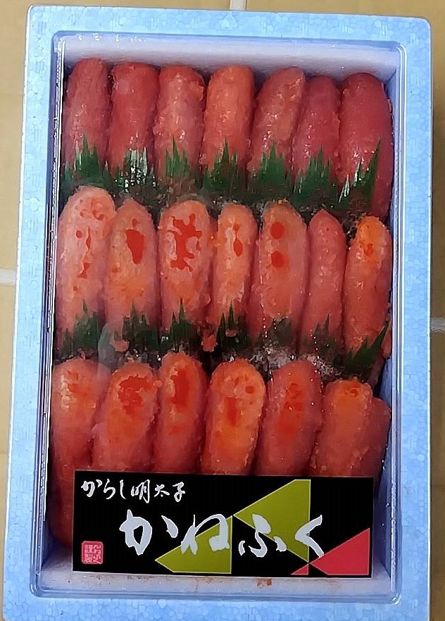 | 原材料 | スケソウタラの卵(アメリカ、ロシア)食塩、醸造調味料、果糖ぶどう糖液糖、唐辛子、調味料(アミノ酸など)、酸化防止剤、(ビタミンC)、酵素、発色剤(亜硝酸Na),(原材料の一部に小麦、大豆、ゼラチンを含む) |