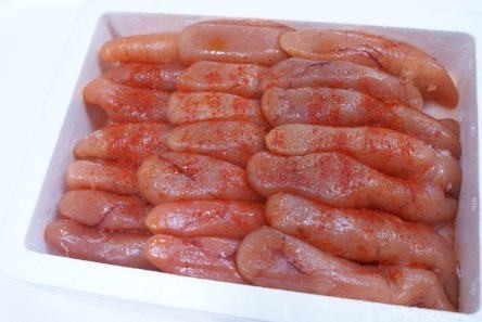 | 原材料 | たらの卵(ロシア)、食塩、米発酵調味料、かつおエキス、唐辛子、たん白加水分解物、椎茸エキス、調味料、(アミノ酸)ソルビット、酸化防止剤(V.C)ナイアシン、発色剤(亜硝酸Na) |
