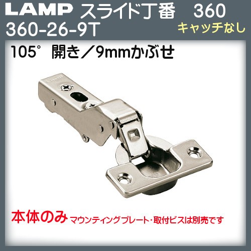 スガツネ オリンピアスライド丁番 LAMP 360-26-9T 9mmかぶせ/105°開き「スガツネ製品ならカネマサ」