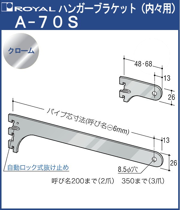 ハンガー ブラケット ロイヤル クロームめっき A-70S 内々用 サイズ:300mm