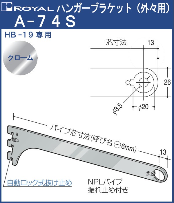 ハンガー ブラケット ロイヤル クロームめっき A-74S 外々用 サイズ:350mm