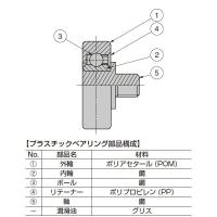 ●ベアリングの材料として最適なポリアセタールを使用しているため、耐摩耗性が大変優れており、摩擦係数が低く、潤滑油なしで軽快、低騒音の回転が得られます。