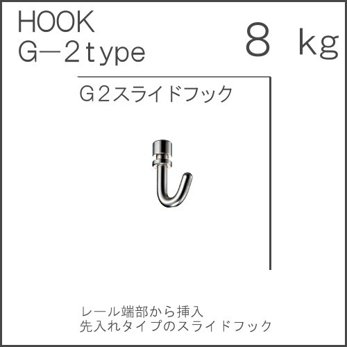 G2スライドフックはレール端部から挿入する先入タイプのスライドフックです。