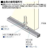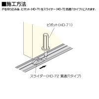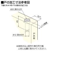 HD-72の受坪に軸先を挿入します。戸に掘込んで取付けます。軸は内蔵のスプリングにより上下動し、戸と枠とのすきまのバラつきに対応します。