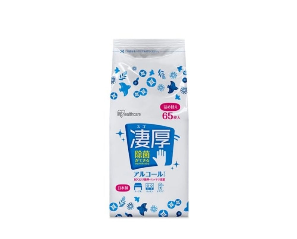 除菌ができるウェットティッシュ凄厚 詰め替え用 アルコールタイプ 65枚 アイリスオーヤマ IRIS WTT-65A 1本(返品不可)