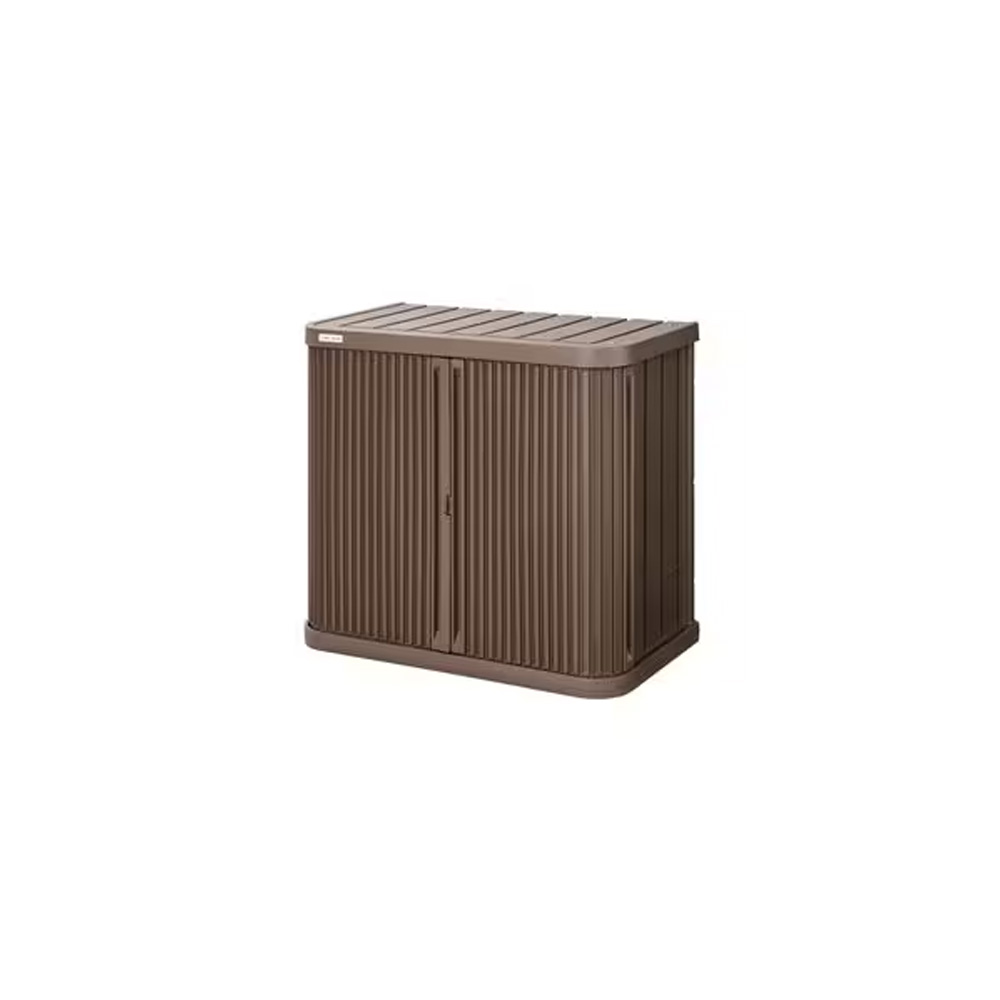 ベランダ等の狭いスペースでの使用に最適なミニロッカーです。外壁に馴染むナチュラルカラーです。灯油ポリタンク(18L)が3本収納できる他、園芸用品、レジャー・スポーツ用品の収納に便利です。プラスチック製で紫外線に強く、雨でも錆びにくいです。シャッターは、スライド扉で大きく開いて物の取り出しがしやすいです。盗難防止に市販の南京錠が使える扉です。お客様組み立てとなります。