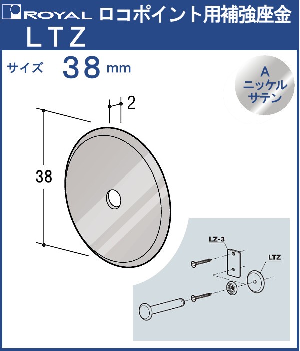 ロコポイント 用補強座金 ロイヤル Aニッケルサテンめっき LTZ-38 サイズ:φ38×厚2.0mm