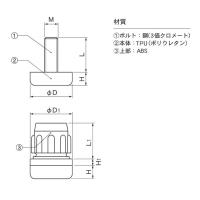 | ボルト:鋼(3価クロメート)、本体:TPU(ポリウレタン)、上部:ABS |