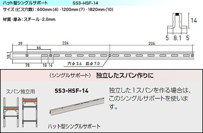 ハット型シングルサポート ロイヤル シューノ32 SS3-HSF-14 600mm Sホワイト 2025新色